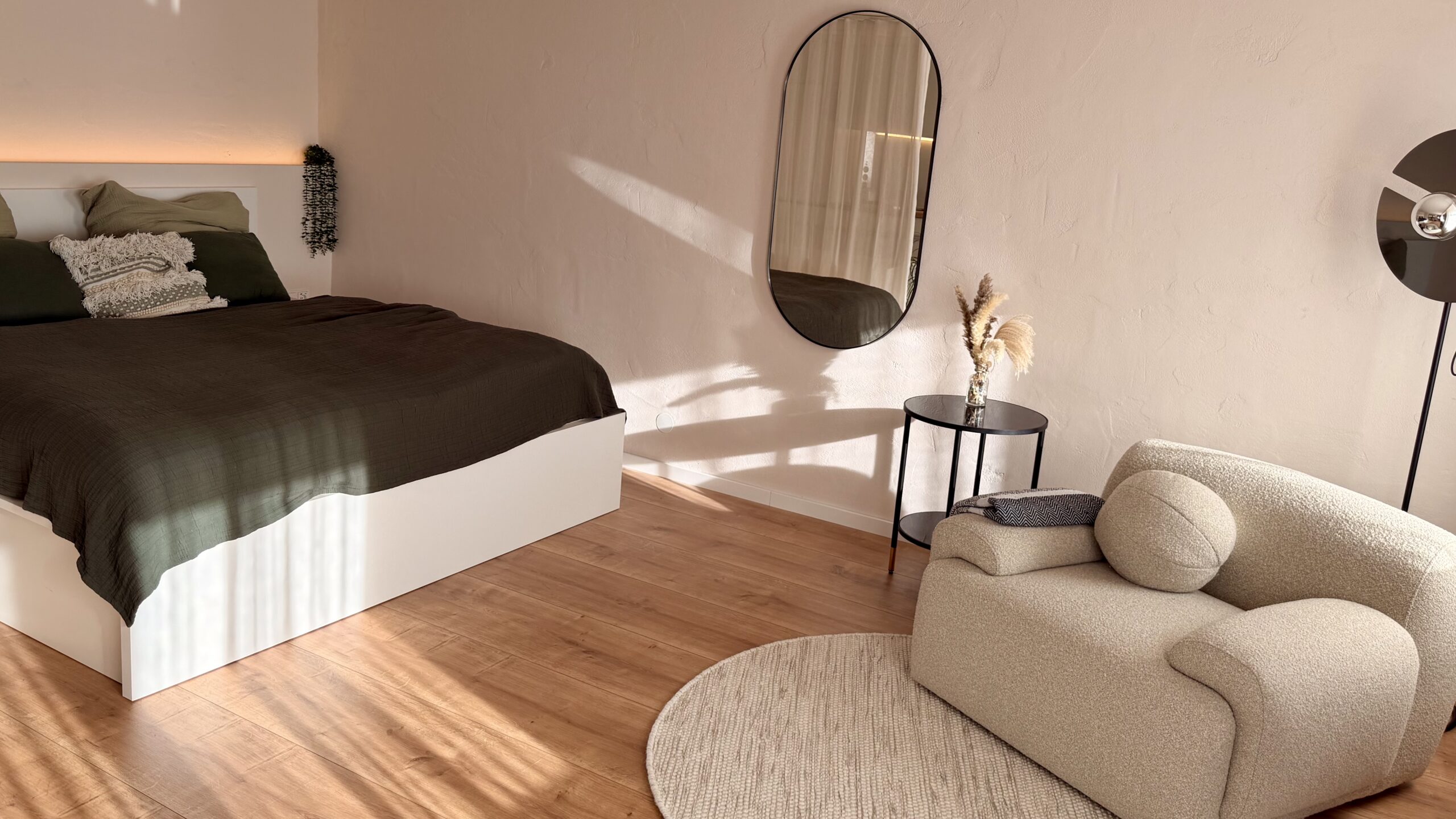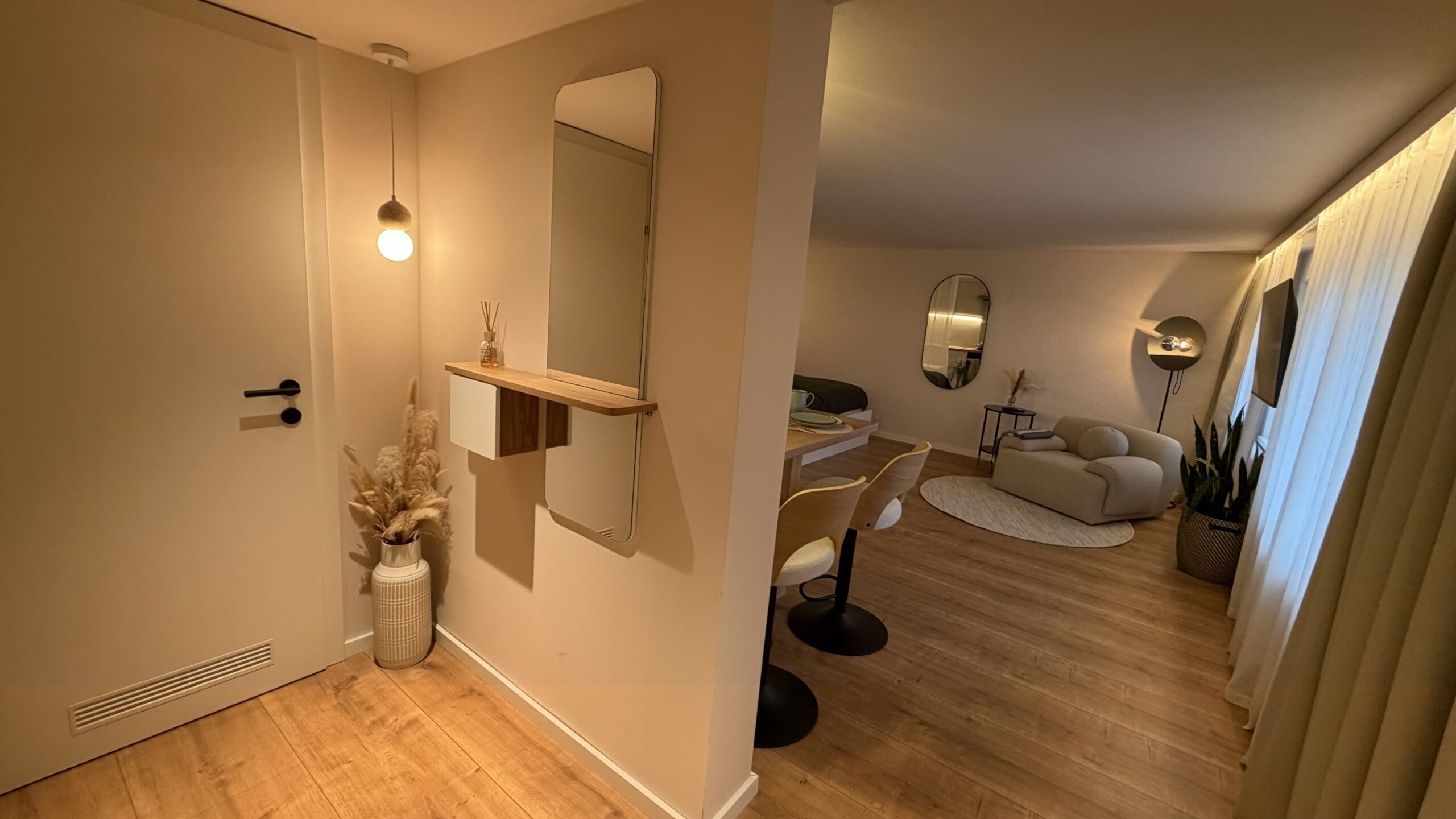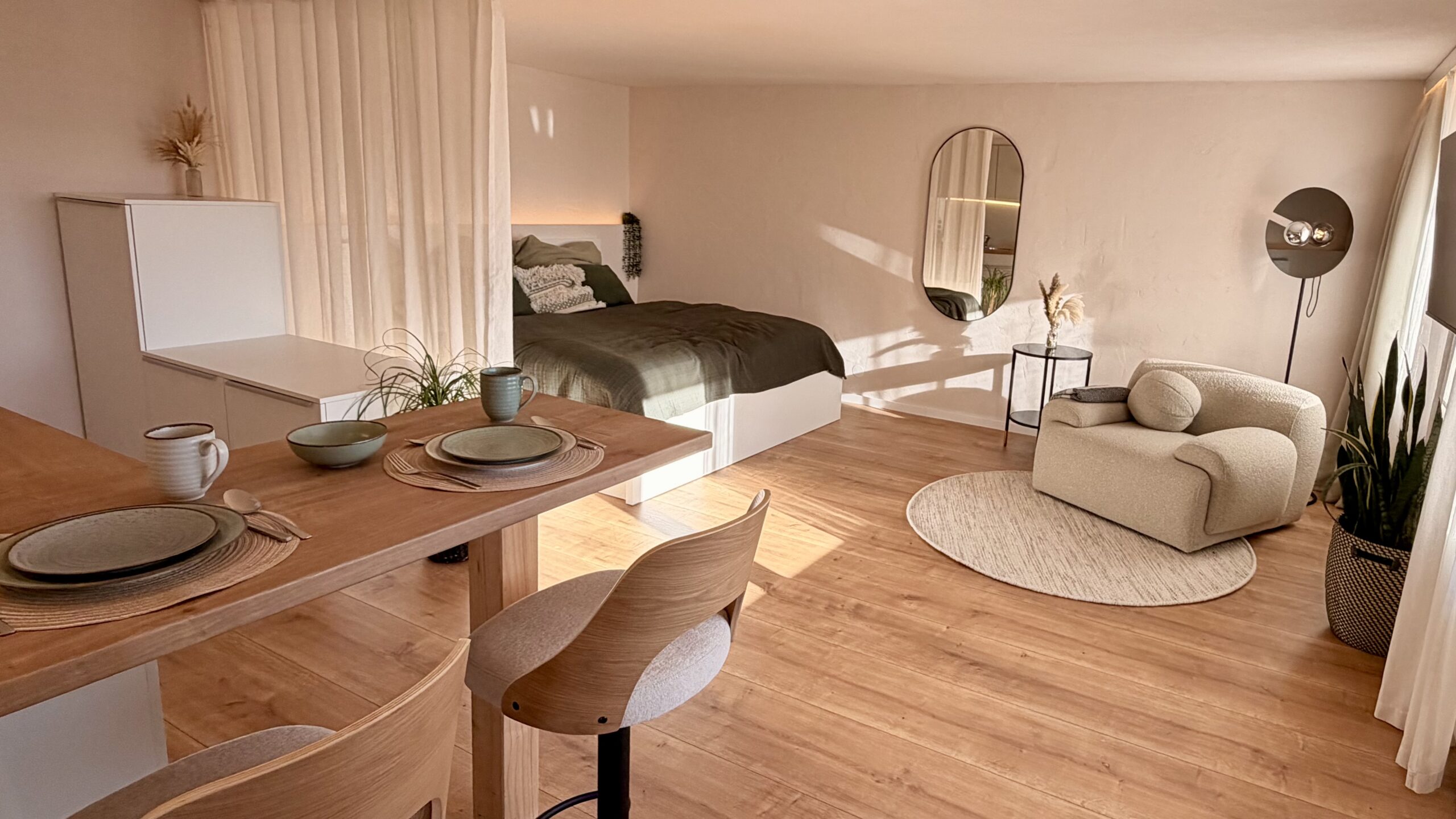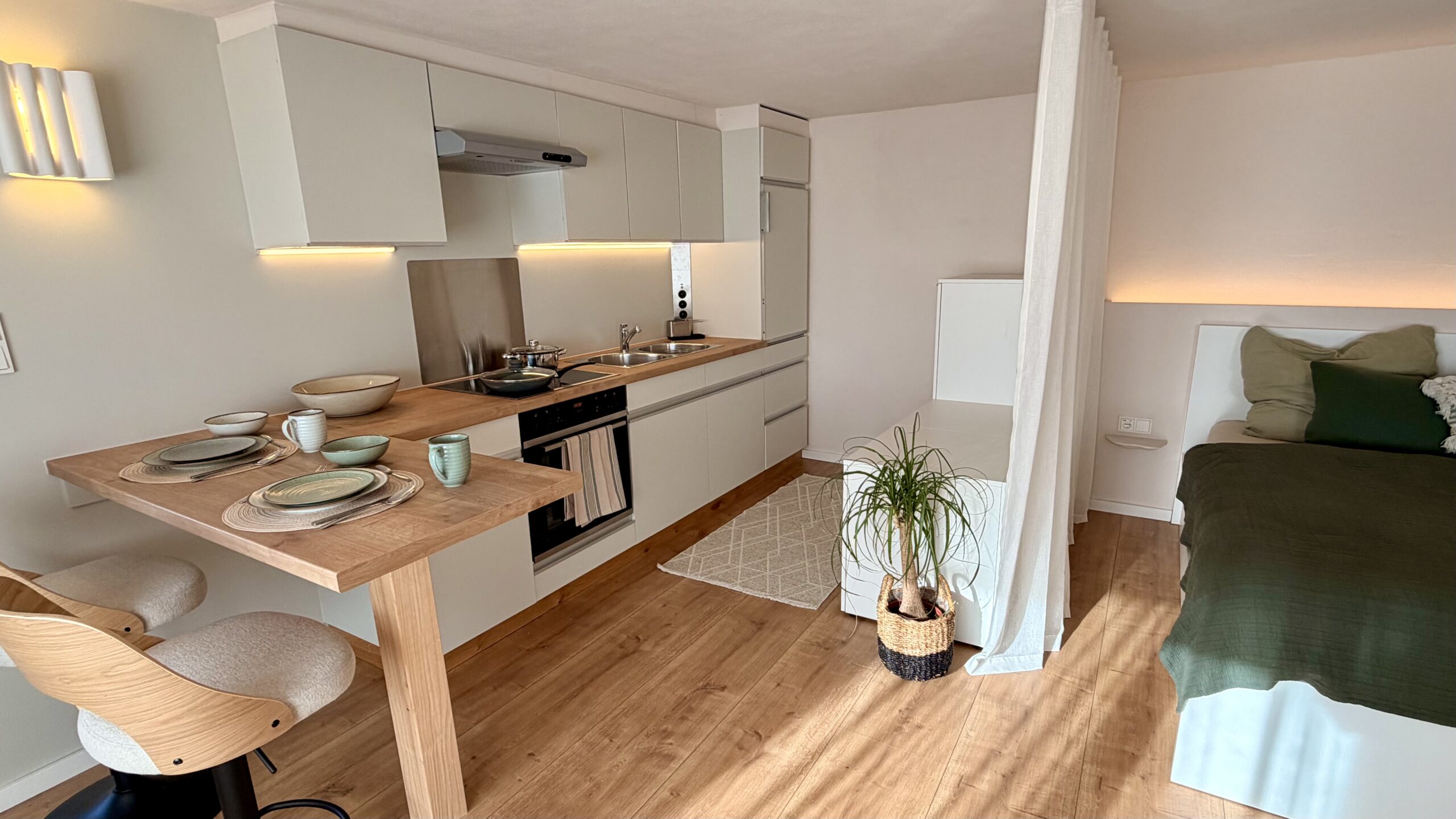 Vom ersten Kaffee am Morgen bis zum letzten Sonnenstrahl am Abend begleitet Dich das Apartment mit durchdachter Ausstattung, sanften Farben und einer Atmosphäre ruhiger Klarheit.