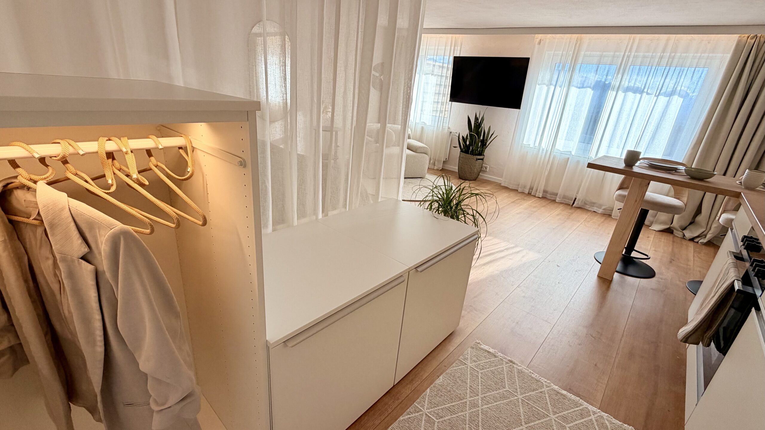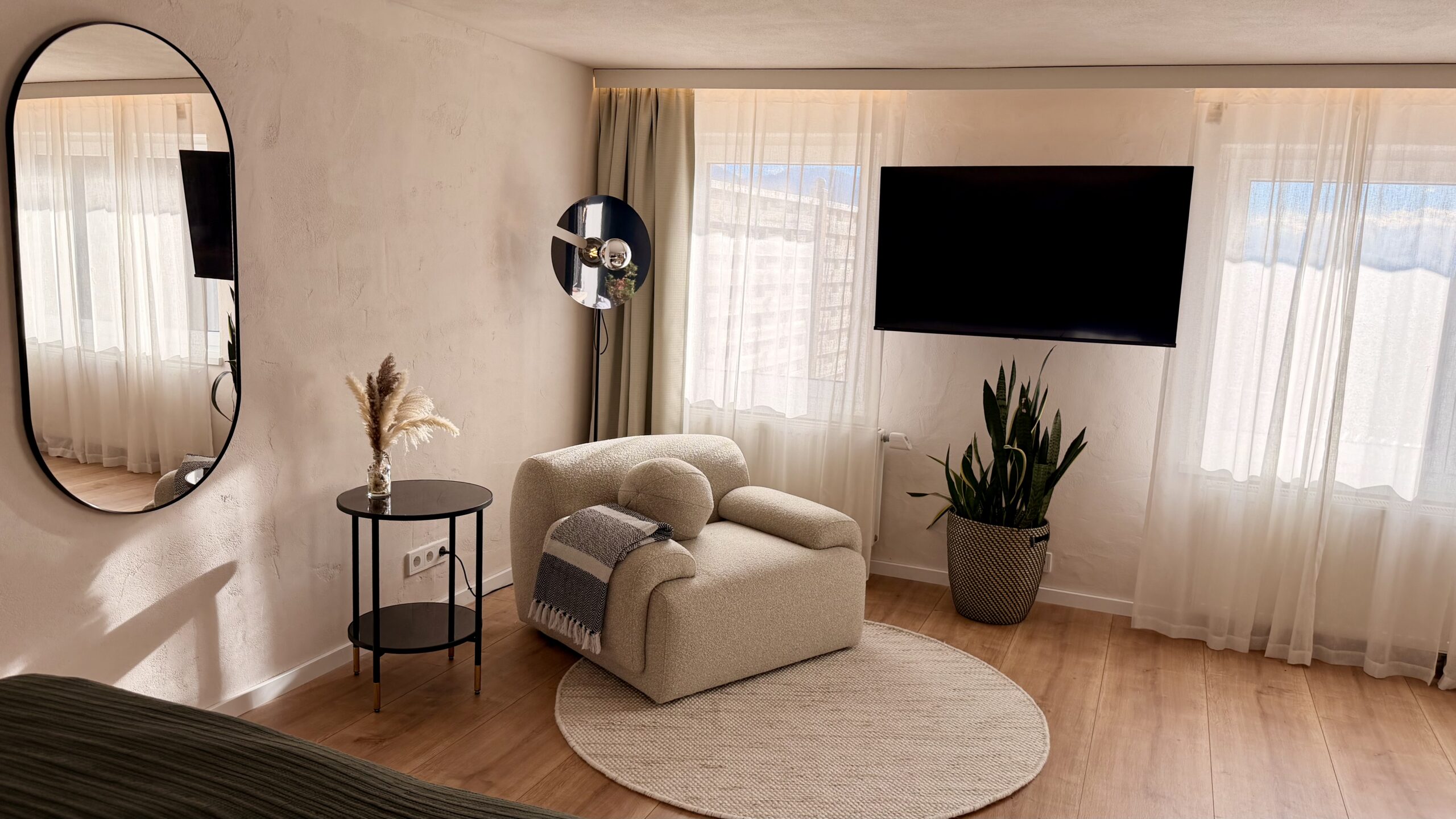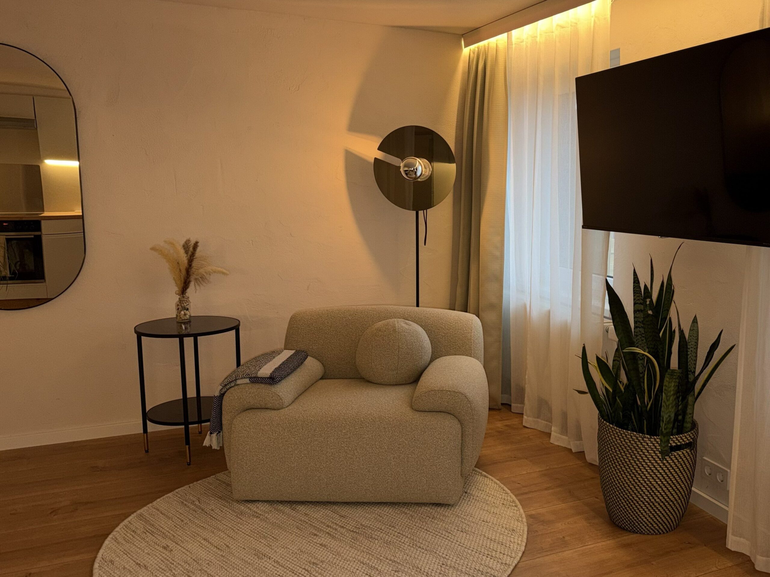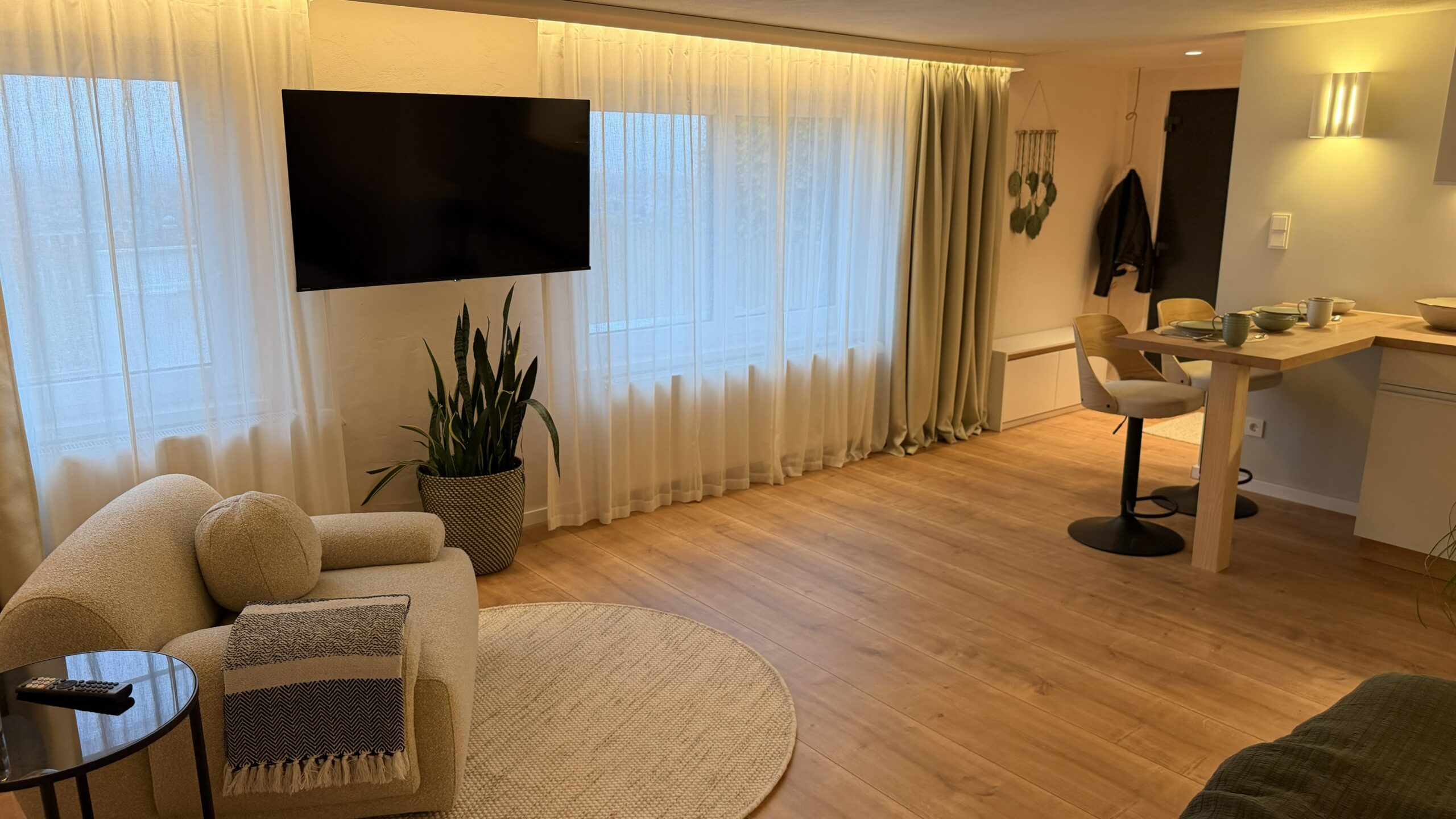 Vom ersten Kaffee am Morgen bis zum letzten Sonnenstrahl am Abend begleitet Dich das Apartment mit durchdachter Ausstattung, sanften Farben und einer Atmosphäre ruhiger Klarheit.