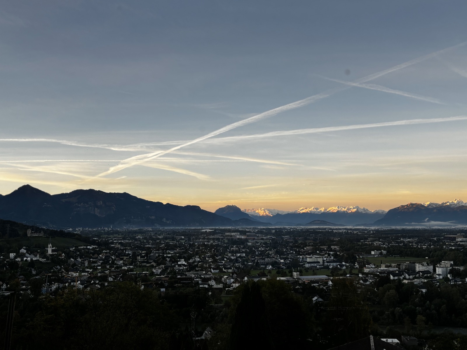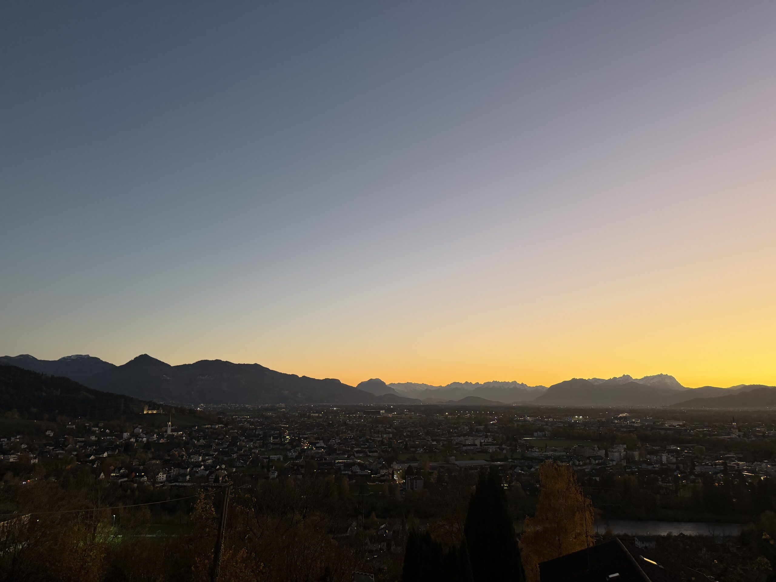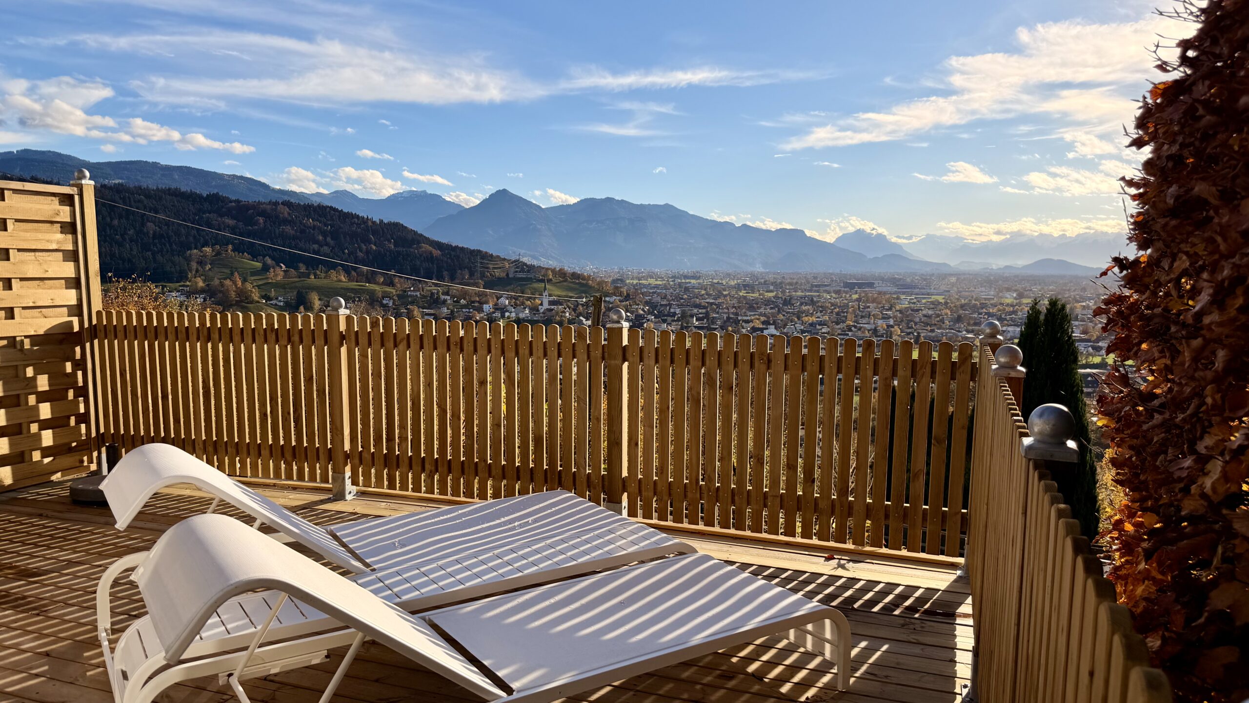 Große Fenster öffnen den Blick über das Rheintal bis in die Schweizer Alpen und schaffen ein Gefühl von Leichtigkeit und Ruhe.
